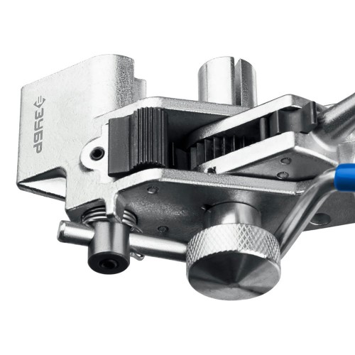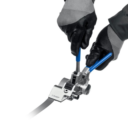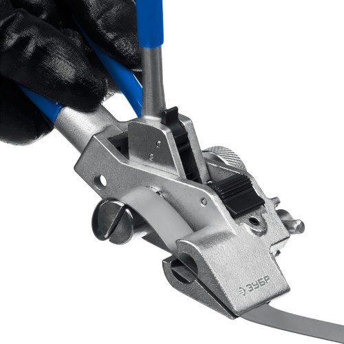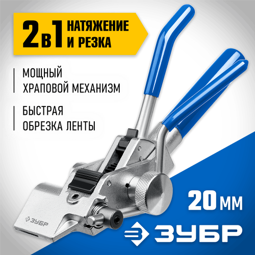 Инструмент с храповым механизмом ЗУБР ИНХ-20 предназначен для натяжения и резки бандажной ленты из нержавеющей стали и фиксации бюгелей и стальных стяжек с шариковым замком типа СКС, СКС-П при креплении вывесок, знаков, табличек, видеокамер, при монтаже арматуры к линиям электропередач и упаковке продукции, а также для крепежа тары. Цельнометаллический корпус с защитным покрытием. Мощный храповой механизм натяжения из высокопрочной инструментальной стали. Ручная регулировка храпового механизма для надежной фиксации. Специальная закалка прижимного блока и ножа. Компактный размер для работы в стесненных условиях. Ширина затягиваемых металлических лент до 20 мм. Рукоятки с противоскользящим покрытием. Усиленный нож с твердостью 55 HRC для обрезки ленты.