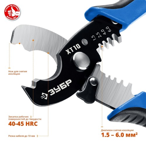 Кабельные ножницы ЗУБР ХT-10 22640, предназначены для удаления изоляции и обрезки кабеля. Изготовлены из высококачественной стали, предназначены для профессионального применения. Обладают повышенным ресурсом, обеспечивают высокое качество электромонтажных работ.