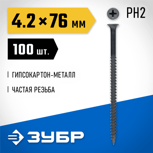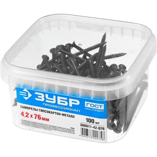 ЗУБР 76 х 4.2 мм, 100 шт., СГМ саморезы гипсокартон-металл 300011-42-076 Профессионал