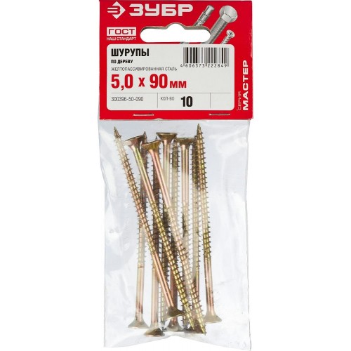 ЗУБР 90 x 5.0 мм, 10 шт., желтый цинк, СУ-Ж саморезы универсальные по дереву 300396-50-090 Мастер