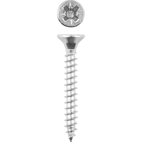 Саморезы универсальные изготовлены из стального прутка с высоким содержанием углерода. Контроль за геометрией самореза начинается с калибровки прутка и заканчивается тщательной проверкой размеров готового изделия. Нормативная твердость стали достигается термической обработкой. Поверхностная твердость 550-800HV, твердость в сердцевине мин. 320HV. Саморезы легко вкручиваются обычным шуруповертом или отверткой. Предварительное сверление в скрепляемых материалах не требуется.