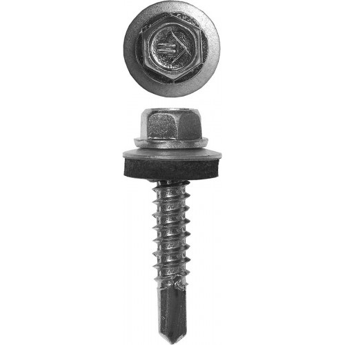 Саморезы кровельные ЗУБР 4-300310-55-025, предназначены для крепления кровельных материалов к металлическим конструкциям. Кровельные саморезы изготовлены из высококачественной стали, прошедшей термическую обработку. Шайба с прокладкой EPDM плотно прижимается к кровельному материалу, герметизируя просверленное отверстие. Шестигранная головка позволяет создать большой крутящий момент и значительно облегчает вкручивание самореза. Находят широкое применение при выполнении бытового ремонта, строительстве, сборке и установке различных конструкций. Прокладка EPDM сохраняет свои свойства при частых изменениях нагрузок, температуры и воздействии УФ излучения. Улучшенная геометрия сверла обеспечивает быстроту и легкость сверления в черепице и листовых кровельных материалах. Цинковое покрытие надежно защищает от коррозии.