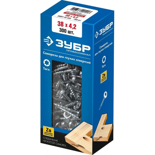 ЗУБР 38 х 4.2 мм, 300 шт, редкая резьба, саморезы для глухих отверстий 30081-42-038 Профессионал