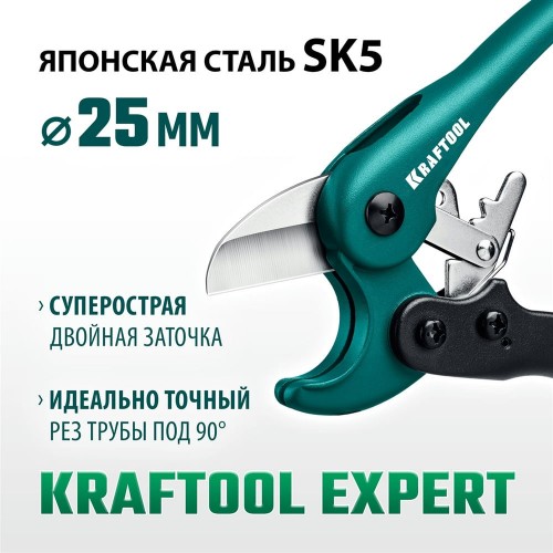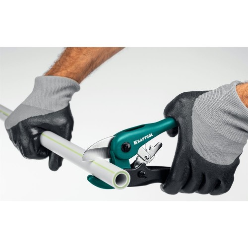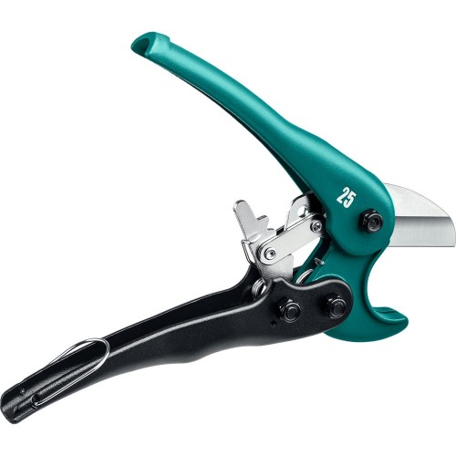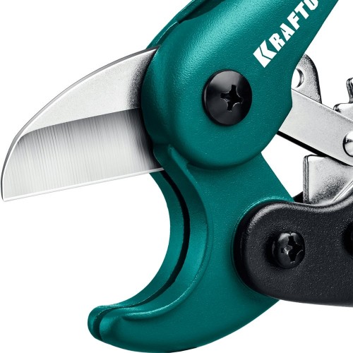 Труборез по металлопластиковым и пластиковым трубам KRAFTOOL 23381-25_z01, предназначен для разрезания различного типа пластиковых и металлопластиковых труб при монтаже водопроводных и отопительных систем. Особый храповый механизм обеспечивает легкий, прямой и точный рез одной рукой с приложением минимального усилия. Специализированное лезвие изготовлено из высококачественной японской стали SK5. Лезвие закалено до твёрдости 57 HRC, поэтому дольше сохраняет остроту и выдерживает нагрузки. Легкий и прочный корпус изготовлен из дюралюминивого сплава. Материал труб: пластиковые (полимерные) - PE, PP, PU, PEX, VPE, CPVC, PVC, PVDF; металлопластиковые - PEX-AL-PEX.