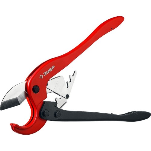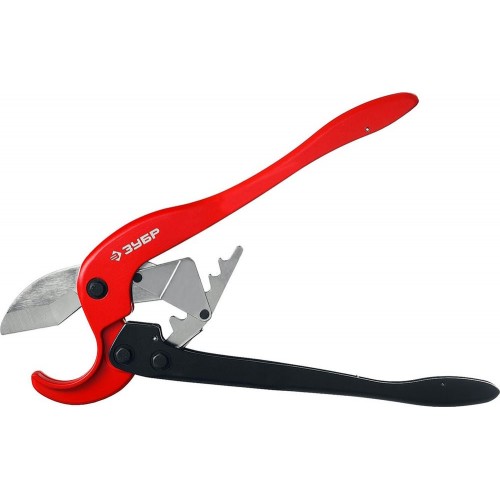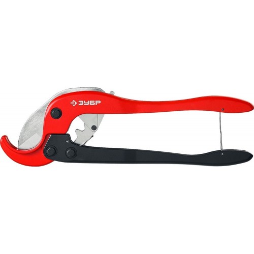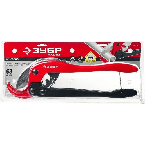 Труборез для пластиковых труб ЗУБР 23703-63, применяется для разрезания различного типа пластиковых труб при монтаже водопроводных и отопительных систем. Труборез изготовлен из алюминиевого сплава для облегчения конструкции, лезвие изготовлено из инструментальной углеродистой стали для наилучшего качества реза. Двуручная конструкция позволяет резать толстостенные трубы. V-образный тип лезвия не заламывает трубу во время отрезки.