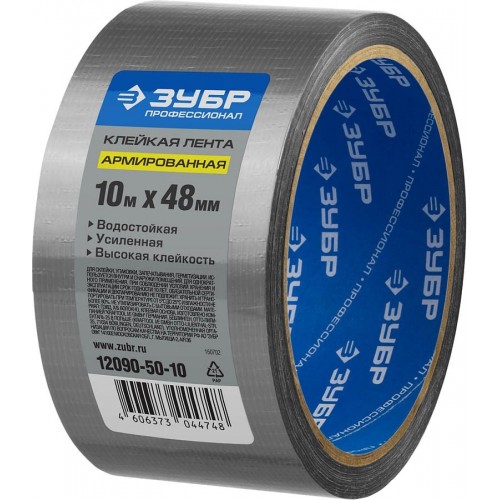 ЗУБР 48 мм х 10 м, серая, на тканевой основе, универсальная, армированная лента (скотч) 12090-50-10 Профессионал