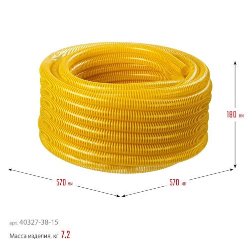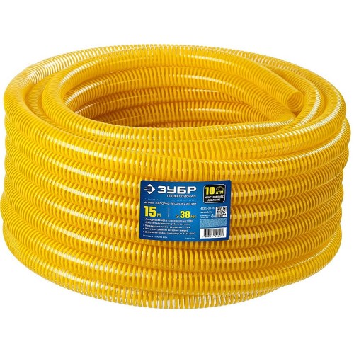 ЗУБР 38 мм x 15 м, 480 гр/м, со спиралью ПВХ, 10 атм., шланг напорно-всасывающий 40327-38-15 Профессионал