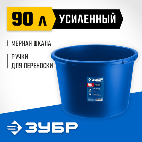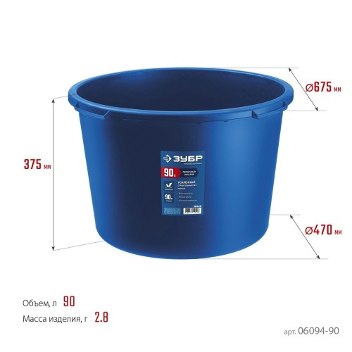 Таз строительный ЗУБР 06094-90, предназначен для приготовления и переноски строительных смесей. Подходит для приготовления любых видов строительных растворов (клеевых, штукатурных, лакокрасочных). Выполнен из высокопрочного морозостойкого пластика, устойчивого к химическому и механическому воздействиям. Имеет устойчивую конструкцию и 4 формованные ручки для удобного хвата и переноски.