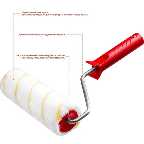 Валик малярный MIRAX 03816-18, обеспечивает равномерное и без разбрызгивания распределение лакокрасочных материалов по обрабатываемой поверхности.