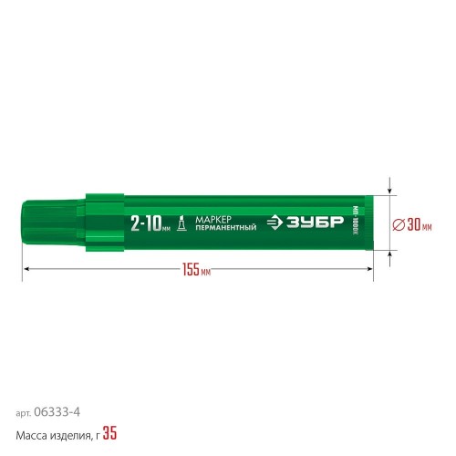 Маркер ЗУБР 06333-4, предназначен для нанесения маркировки, надписей, графических и текстовых обозначений, где требуется разборчивая маркировка при проведении ремонтных, строительных и отделочных работ.
