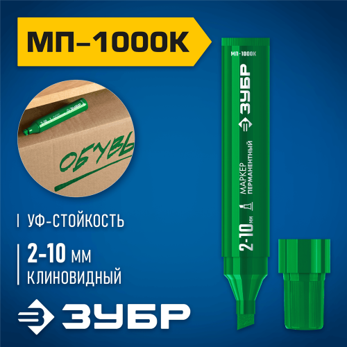 Маркер перманентный с клиновидным наконечником. Экстра-большой объем заливаемых чернил делает данный маркер самым долговечным среди перманентных маркеров ЗУБР. Так как перманентный маркер пишет практически на любой поверхности, он применяется в различных сферах, где требуется нанести надпись, рисунок, знак или указатель.