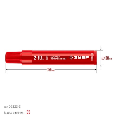 Маркер ЗУБР 06333-3, предназначен для нанесения маркировки, надписей, графических и текстовых обозначений, где требуется разборчивая маркировка при проведении ремонтных, строительных и отделочных работ.
