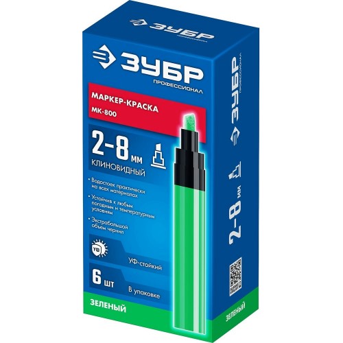 ЗУБР МК-800 2-8 мм, клиновидный, зеленый, экстрабольшой объем, маркер-краска, Профессионал (06327-4)