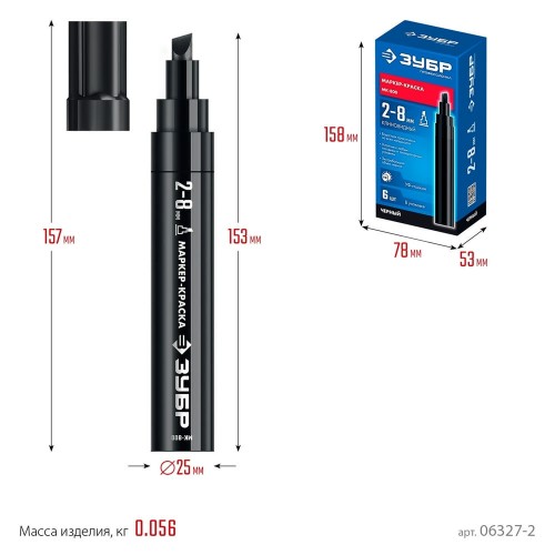 Маркер-краска ЗУБР 06327-2, предназначен для маркировки заготовок из камня, стекла, металла, пластика и других материалов. Универсальный маркер с жидкой быстросохнущей краской подходит практически для любой поверхности. Данный маркер не смывается водой, не выгорает на солнце и устойчив к температурным перепадам. Практичеcки безопасен для человека, поскольку не имеет в составе токсичных веществ, таких как ксилол.
