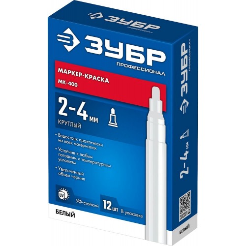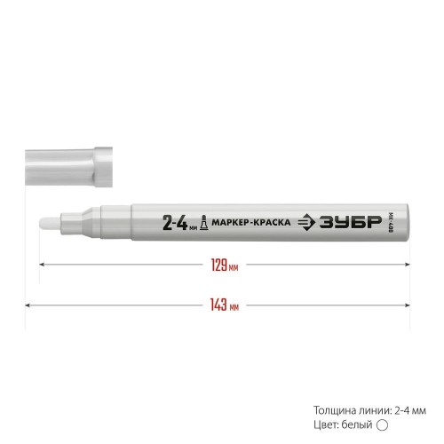 Маркер-краска ЗУБР МК-750 06325-8, предназначен для нанесения разметки. Универсальный маркер с жидкой быстросохнущей краской подходит практически для любой поверхности. Данный маркер не смывается водой, не выгорает на солнце и устойчив к температурным перепадам. Практичеcки безопасен для человека, поскольку не имеет в составе токсичных веществ, таких как ксилол.