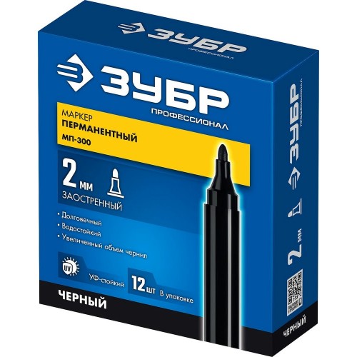 ЗУБР МП-300 2 мм, заостренный, черный, перманентный маркер, Профессионал (06322-2)