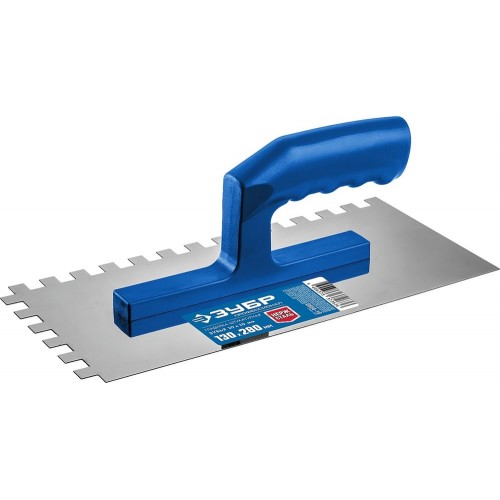 Зеркально отполированное нержавеющее полотно обеспечит надежность конструкции, лучшую защиту от коррозии, а удобная рукоять из ударопрочной пластмассы обеспечит комфортную работу при нанесении и распределении штукатурных смесей и клеевых составов.