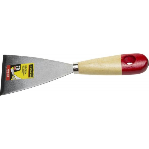 Шпатель для удаления ржавчины STAYER 1002-70, предназначен для удаления ржавчины и старых лакокрасочных покрытий с обрабатываемой поверхности. Усиленное заточенное стальное полотно и деревянная рукоятка обеспечивают надежность и удобство инструмента.