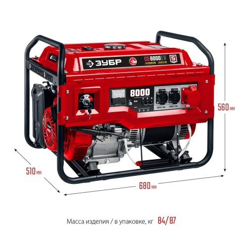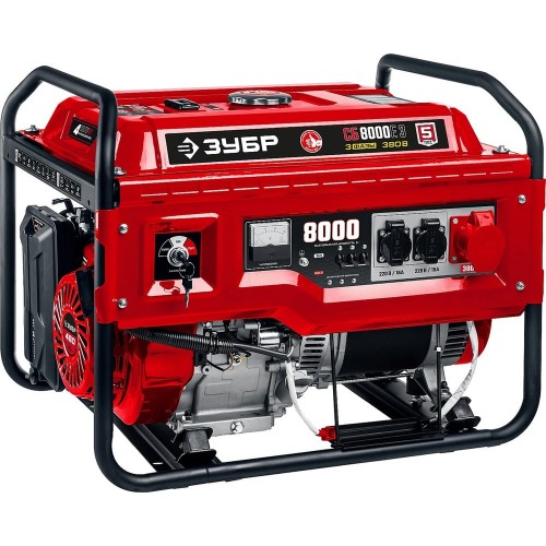 ЗУБР 8000 Вт, 380 / 220 В, бензиновый генератор с электростартером (СБ-8000Е-3)