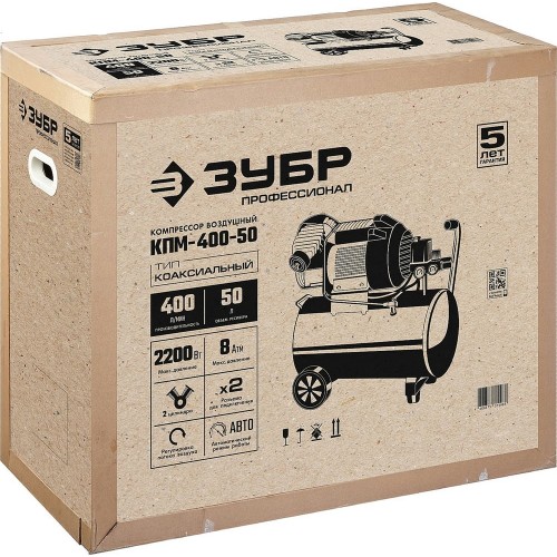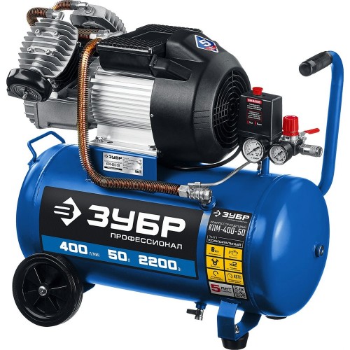 ЗУБР 2200 Вт, 400 л/мин, 50 л, поршневой, масляный, компрессор воздушный КПМ-400-50 Профессионал