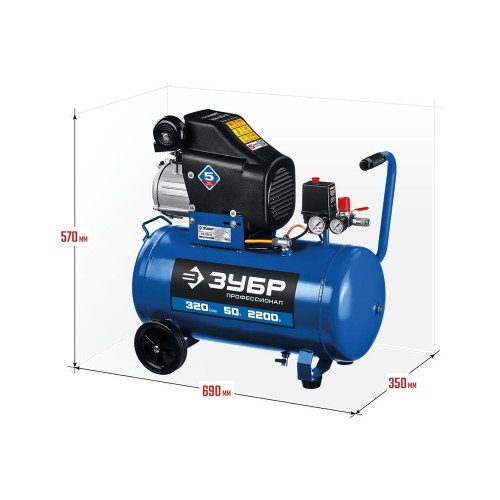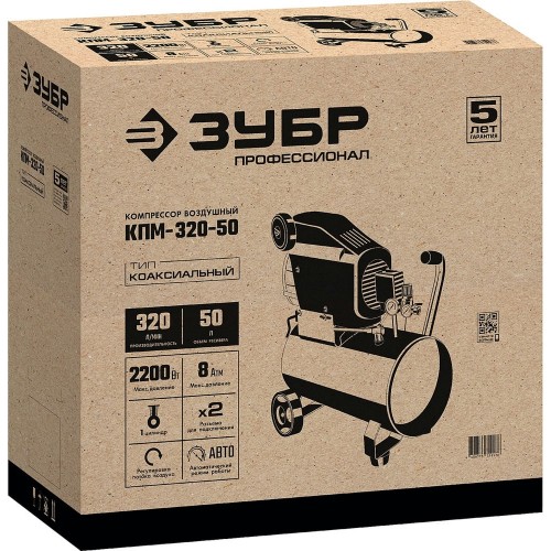 ЗУБР 2200 Вт, 320 л/мин, 50 л, поршневой, масляный, компрессор воздушный КПМ-320-50 Профессионал