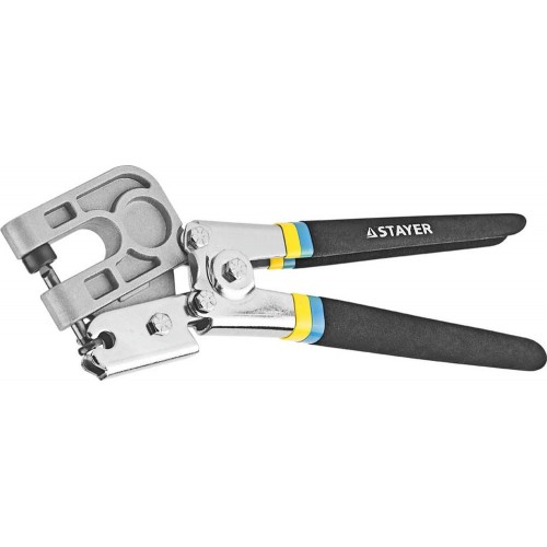 Просекатель STAYER 31381, предназначен для быстрого крепления металлических профилей. Прорезиненные ручки. Усиленная конструкция. Возможность замены пуансона. Специальная форма зева позволяет работать в труднодоступных местах.