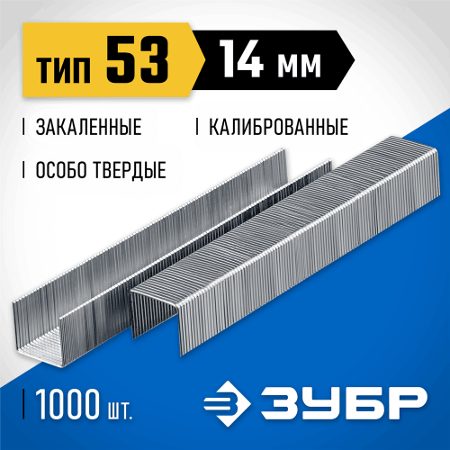 ЗУБР скобы тип 53 (A / 10 / JT21), 14 мм, закаленные, калиброванные, скобы тонкие особотвердые 31620-14_z01 Профессионал