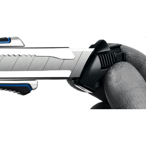 Профессиональный металлический нож с обрезиненным корпусом применяется для разрезания различных материалов: линолеума, ковровых покрытий, гипсолитовых плит, гипсокартона, кровельных материалов, пластика, дерева и т.д.