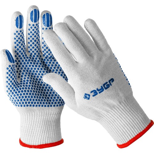 ЗУБР L-XL, 13 класс, х/б, перчатки с точками увеличенного размера, с ПВХ-гель покрытием (точка) 11451-XL Профессионал