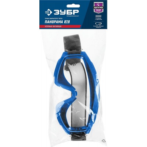 Панорамные защитные очки ЗУБР ПАНОРАМА ХС 110235_z01, предназначены для защиты органов зрения от твердых летящих частиц и брызг не разъедающих жидкостей. Химически стойкая ацетатная линза обеспечивает превосходную защиту при работе с аэрозолями и жидкостями. Оснащены воздуховодами непрямой вентиляции, позволяющими работать в пыльной среде. Ударопрочный материал линзы превосходно защищает от мелких летящих частиц. Оптический класс 1 - линза не создает искажения. Панорамная линза обеспечивает превосходный обзор. Защитное покрытие - анти-запотевающее, устойчивое к царапанию и истиранию, самополирующий эффект, антистатичное. Широкая эластичная лента оптимальна для надежной фиксации на голове.