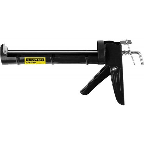 Пистолет для герметика STAYER 0660, предназначен для выдавливания и нанесения герметиков, а также клеевых составов из картриджей объемом до 310 мл. Имеет полуоткрытую конструкцию, крашенный стальной корпус и шток из оцинкованной стали. Данная спецификация обеспечивает прочность и надежность конструкции пистолета при использовании.
