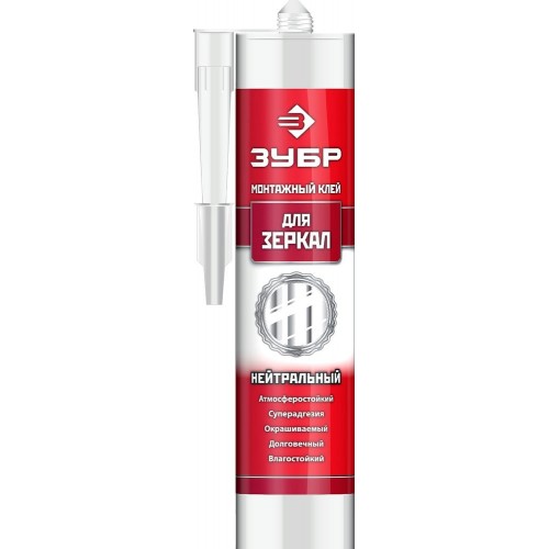 Монтажный клей для зеркал, бежевый, ЗУБР 41339, предназначен для строительства и профессионального использования. Высокая сила склеивания для всех типов стекла. Обеспечивает вибро и ударопрочное соединение. Остается водостойким и морозостойким. Применяется для внутренних и наружных работ. Рекомендуется использовать для монтажных работ с большинством строительных материалов (металлы, керамика, бетон, дерево, пластики, пенопласты, любые типы панелей). Идеально подходит для монтажа зеркал на любые поверхности.