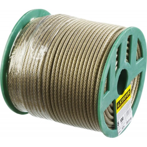 • STAYER 5 мм, 100 м, трос стальной в полимерной оболочке 30410-50