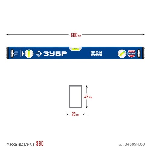 ЗУБР 600 мм, Усиленный магнитный уровень, Профессионал-М (34589-060_z01)