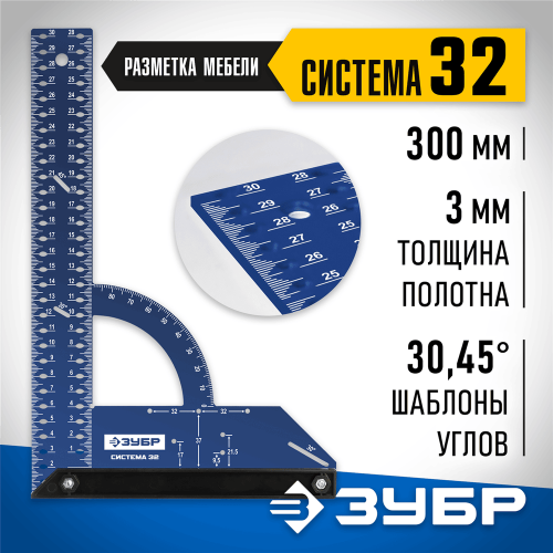 ЗУБР Система-32, разметочный мебельный угольник (34398-30)