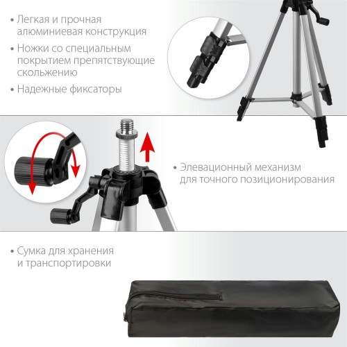 Лазерный уровень построитель плоскостей STAYER 34960-1, предназначен для построения лазерной проекции. Функция автовыравнивания устраняет необходимость настройки, гарантирует максимальную точность при разметке. 4 режима проецирования линий: самовыравнивающаяся горизонтальная линия, самовыравнивающаяся вертикальная линия, самовыравнивающийся крест 90°, зафиксированный крест 90°. Поворотное основание 360 со шкалой. Функция автовыравнивания не требует настройки, обеспечивая повышенную точность при разметке. Диапазон компенсирования ± 4° для установки на неровную поверхность. Световая индикация при превышении порогового значения угла самовыравнивания. Предусмотрена установка на штатив (резьба 5/8 дюйма).