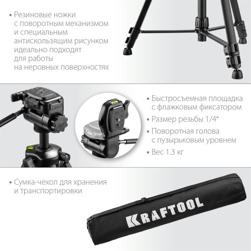 KRAFTOOL штатив элевационный, 59-160 см, 1/4", ST-160 34714