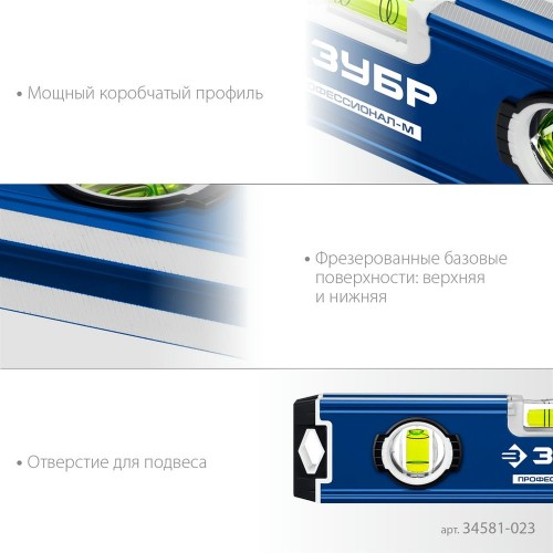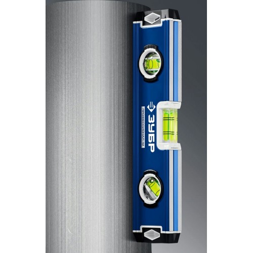 Магнитный строительный уровень ЗУБР 34581-023, предназначен для контроля горизонтальности и вертикальности поверхностей. Мощные магниты. Точность измерения 0.5 мм/м. V-образный вырез для установки на трубы. Фрезерованная базовая поверхность. 3 ударопрочные колбы.