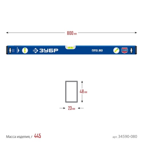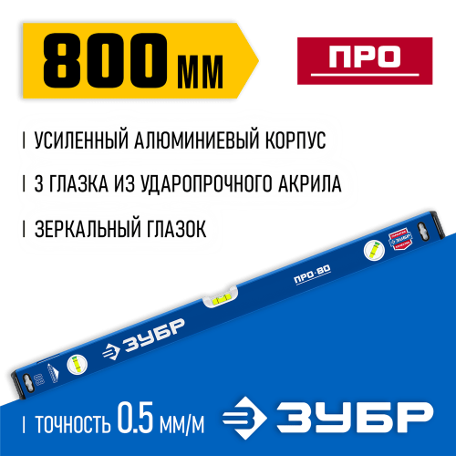 ЗУБР 800 мм, усиленный уровень с зеркальным глазком 34590-080 Профессионал