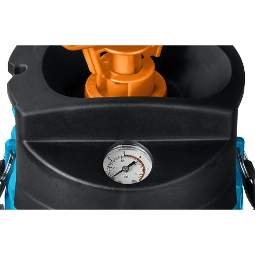 Опрыскиватель переносной GRINDA 8-425155_z02, предназначен для работ по защите растений от вредителей и болезней. Широкая горловина, упоры для ног, наличие манометра и армирование шланга. Ремень для переноски на плече, телескопический удлинитель из латуни, регулировка струи и клапан сброса давления.