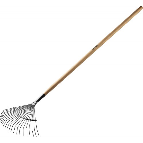 Грабли садовые веерные GRINDA 39591, предназначены для использования на садово-огородных участках и в строительстве для уборки территории, выравнивания грунта и подготовки почвы к посадкам растений.