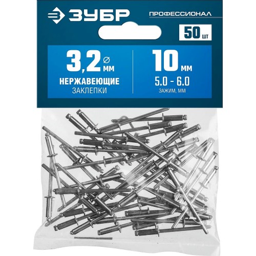 Заклепки из нержавеющей стали ЗУБР 313166-32-10, предназначены для получения неразъемного соединения из двух или более слоев материалов с помощью заклепочника.