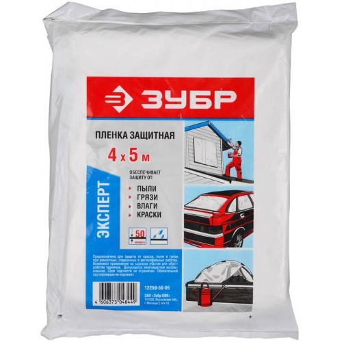 Пленка защитная ЗУБР 12259-50-05, предназначена для защиты от краски, пыли и грязи при ремонтных, отделочных и автомобильных работах. Укрывная пленка ЗУБР обеспечит прекрасную защиту от пыли, грязи, влаги и краски при проведении автопокрасочных, ремонтных и отделочных работ, а также различных работ на садовом участке, может применяться для обустройства парников. Благодаря особым прочностным свойствам, подходит для многократного применения. Возможно применение на садовом участке для обустройства парников. Допускается многократное использование. Обеспечивает защиту от пыли, грязи, влаги, краски.