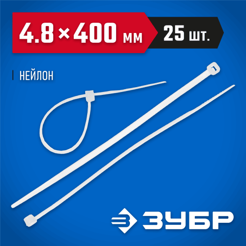 Пластиковые хомуты ЗУБР 4-309017-48-400, предназначены для быстрой стяжки кабелей электропроводки в пучок и их крепления к различным элементам конструкции при проведении электромонтажных работ. Пластиковые хомуты (стяжки) имеют очень широкий спектр применения при проведении строительных и ремонтных работ. Изготовлены из высококачественного прочного и эластичного нейлона. Отличаются повышенной морозоустойчивостью и термостойкостью. Диапазон рабочих температур от -35°С до +80°С допускает использование хомутов в самых разнообразных условиях. Обладают хорошими диэлектрическими свойствами.