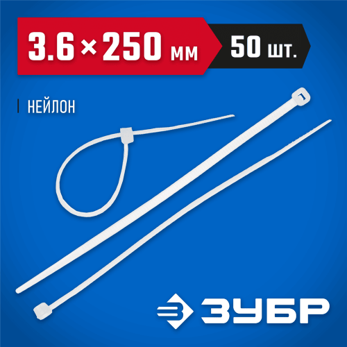 ЗУБР 250х3.6 мм, 50 шт., хомуты нейлоновые белые 4-309017-36-250 Профессионал