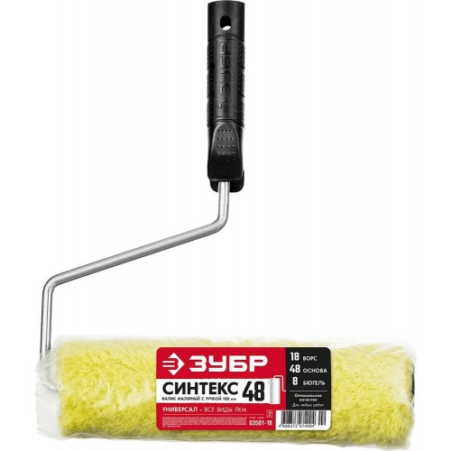 Валик малярный ЗУБР 03501-18_z02, обеспечивает равномерное и без разбрызгивания распределение лакокрасочных материалов по обрабатываемой поверхности.