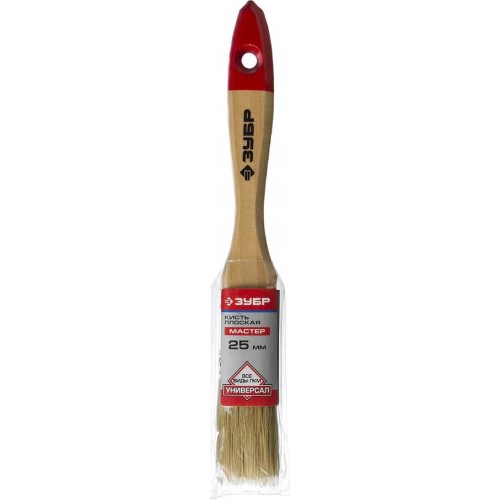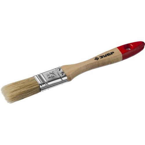 Кисть плоская малярная ЗУБР 4-01003-025, предназначена для работы с красками, эмалями, лаками на масляной основе и иными ЛКМ. Светлая натуральная щетина высокого качества. Повышенная износоустойчивость. Деревянная ручка с отверстием для подвески.