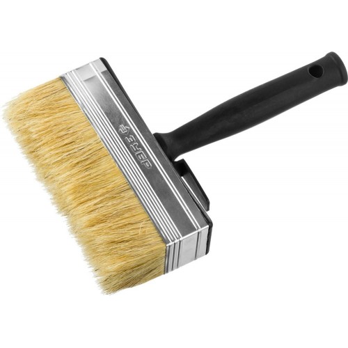 Отличное решение для работы со всеми типами ЛКМ, а так же грунтовки, побелки на большие поверхности, клеевых составов на обои, размывки потолков. Щетина кисти надежно закреплена бандажом из никелированной стали, а наличие удобной пластмассовой рукоятки обеспечит комфортную работу