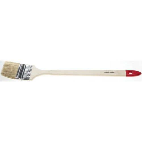Кисть радиаторная STAYER 0111-75, предназначена для нанесения всех видов лакокрасочных материалов в труднодоступных местах. Перед использованием и после окончания работ промойте кисть в растворителе. При работе используйте средства индивидуальной защиты. Натуральная щетина обеспечит оптимальное нанесение различных видов ЛКМ в труднодоступных местах, щетина кисти надежно закреплена бандажом из никилированной стали, а наличие удобной деревянной рукоятки обеспечит комфортную работу.