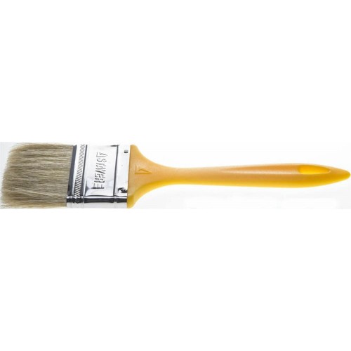 Натуральная щетина обеспечит оптимальное нанесение различных видов ЛКМ, щетина кисти надежно закреплена бандажом из никилированной стали, а наличие легкой пластмассовой рукоятки обеспечит комфортную работу
